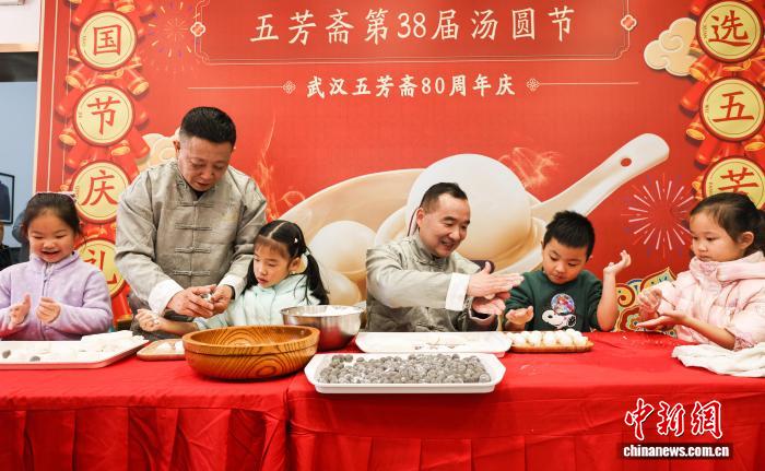 图为“浮薄担郎”为市平易近奉上叠式汤圆。中新社记者 弛畅 摄