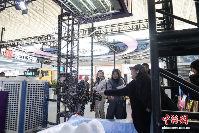 图为不雅铺者正在冰雪互动领悟区尝试肉体谐和本领。中新社记者 赵宇航 摄